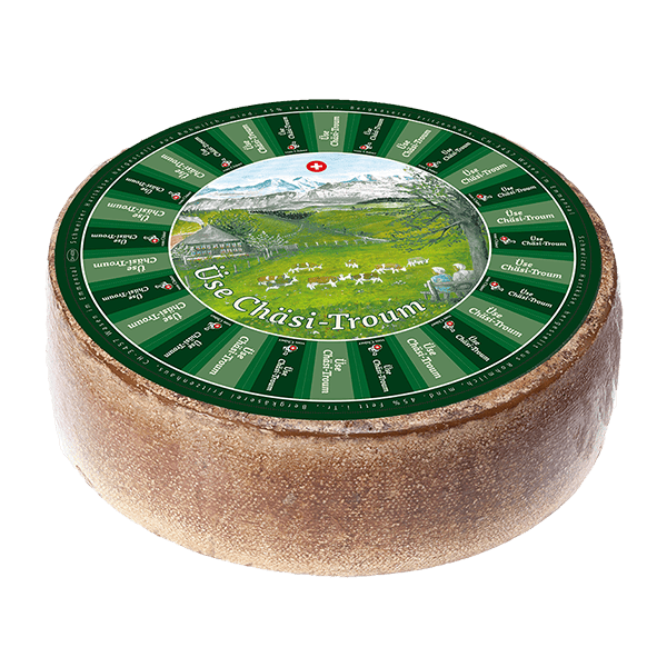 Eines Tages gab Michael Spycher dem pensionierten Bauern Fritz Lanz ein besonderes Stück Käse - hergestellt aus Milch, die vor über zwölf Monaten in die Käserei geliefert worden war. Für dieses außergewöhnliche Stück Käse wollte Michael lediglich eine Zeichnung von der wunderbaren Natur seiner Heimat, dem Fritzenhaus, haben. Der Bauer war nämlich für seine wunderschönen Zeichnungen bekannt. So machte sich Fritz Lanz an einem schönen Sommermorgen auf den Weg zu seinem Lieblingsort im Fritzenhaus. Den Rucksack hatte er gefüllt mit einem Bauernbrot seiner Frau, dem Käse von Michu und seinen Zeichnungs-Utensilien. Dort angekommen, bot sich dem pensionierten Landwirt ein Panorama der Superlative: Beim Blick in Richtung Mieschbode und Hinterarni, mit der herrlichen Kulisse der verschneiten Berner Alpen im Hintergrund, wurde er von Inspiration übermannt und hielt die Stimmung auf seinem Papier fest. Den Käse hatte er dabei längst genossen. Kurz darauf übergab er das Bild an den Käsermeister - unter der Bedingung, dass ihm von Zeit zu Zeit ein Stück dieses Käses reserviert werde. Spycher war von der Zeichnung so begeistert, dass er den Käse sofort "Üse Chäsitroum" taufte.